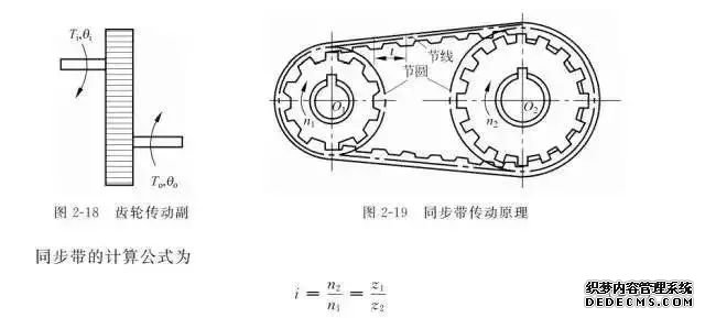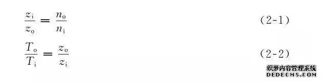 齿轮副不但可以传递运动角位移和角速度,而且可以传递力和力矩,一个齿轮装在输入轴上,另一个齿轮装在输出轴上,可以得到齿轮的齿数与其转速成反比 [式 (2-1)],输出力矩与输入力矩之比等于输出齿数与输入齿数之比 [式 (2-2)]。