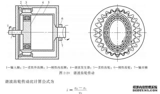 谐波齿轮传动由刚性齿轮、谐波发生器和柔性齿轮三个主要零件组成。