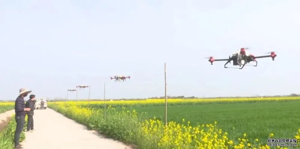 为了确保全镇 3.5 万亩油菜、3.7 万亩小麦丰产丰收工作抓紧落实,当阳市河溶镇政府实行了一个统防统治的办法,从专业植保合作社调集了 18 台植保无人机,进行无人机飞防,每天作业量可以达到 15000 亩左右,不到一周就可以把镇上的油菜、小麦全部进行一次统治。